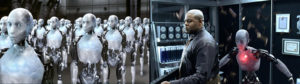 Prenons exemple sur les robots du film I, robot. Ces derniers sont censés être neutres, d’où le choix d’un visage inexpressif et des corps translucides.