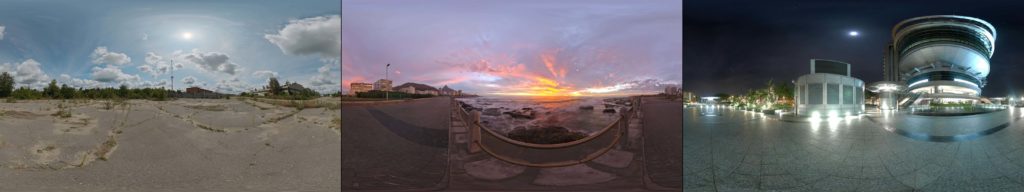 Le principe de la fabrication d’une HDRI est de réaliser un bracketing, c’est-à-dire, prendre en photo plusieurs fois une même scène, à des expositions différentes, afin de capter toute l’étendue de la luminosité, permettant par la suite d’avoir ces fameux “au-delà” de la couleur dont nous vous parlions en introduction. Dans les HDRI nous retrouvons très communément les HDRI 360° qui fournissent un panorama sphérique en HDR.