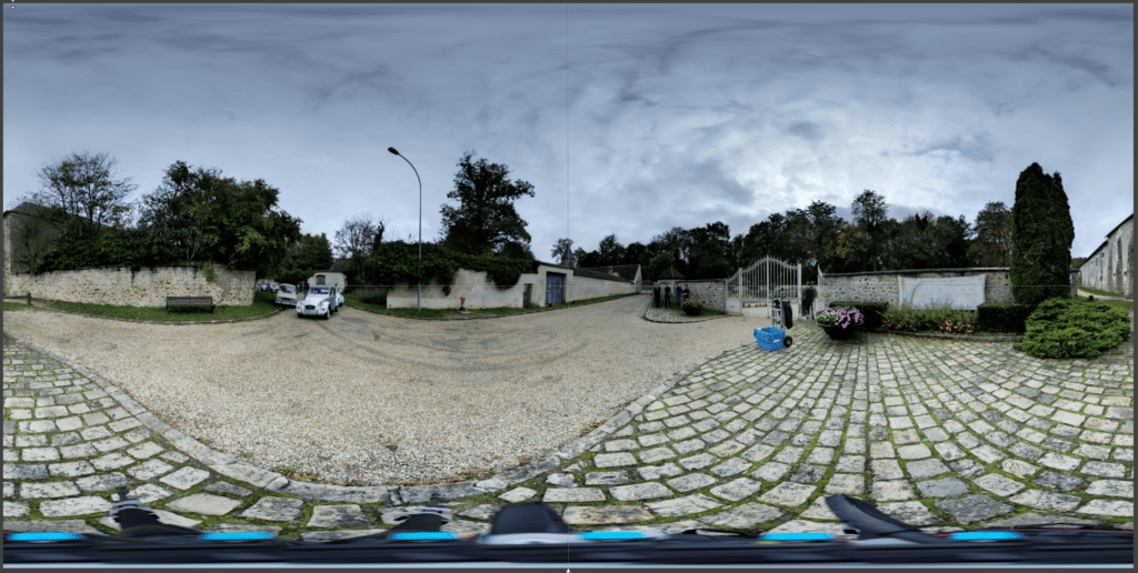 Voici le résultat final du traitement de l’image, le merging, faisant disparaître les bords des différentes images intégrées, produisant donc, une image HDRI 360°.