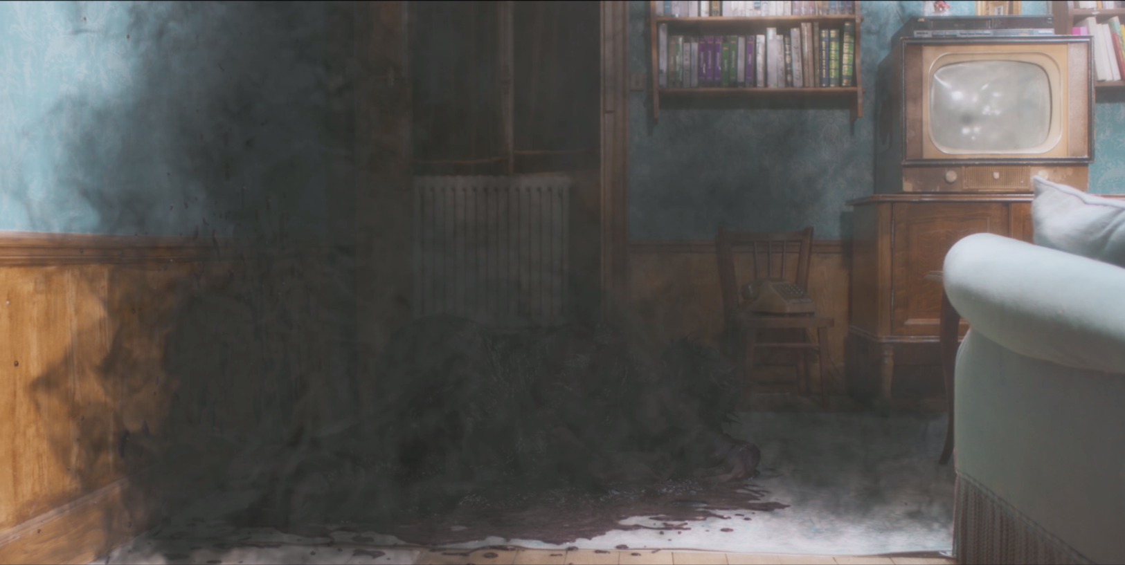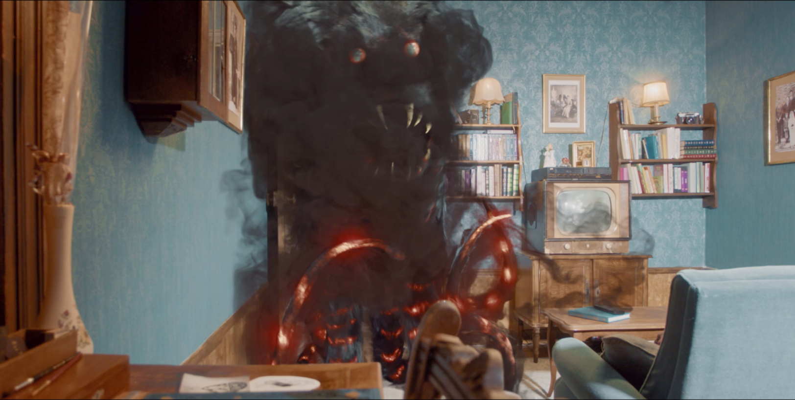 - A practical special effect on set (the tentacle of the large monster sliding under the blanket)