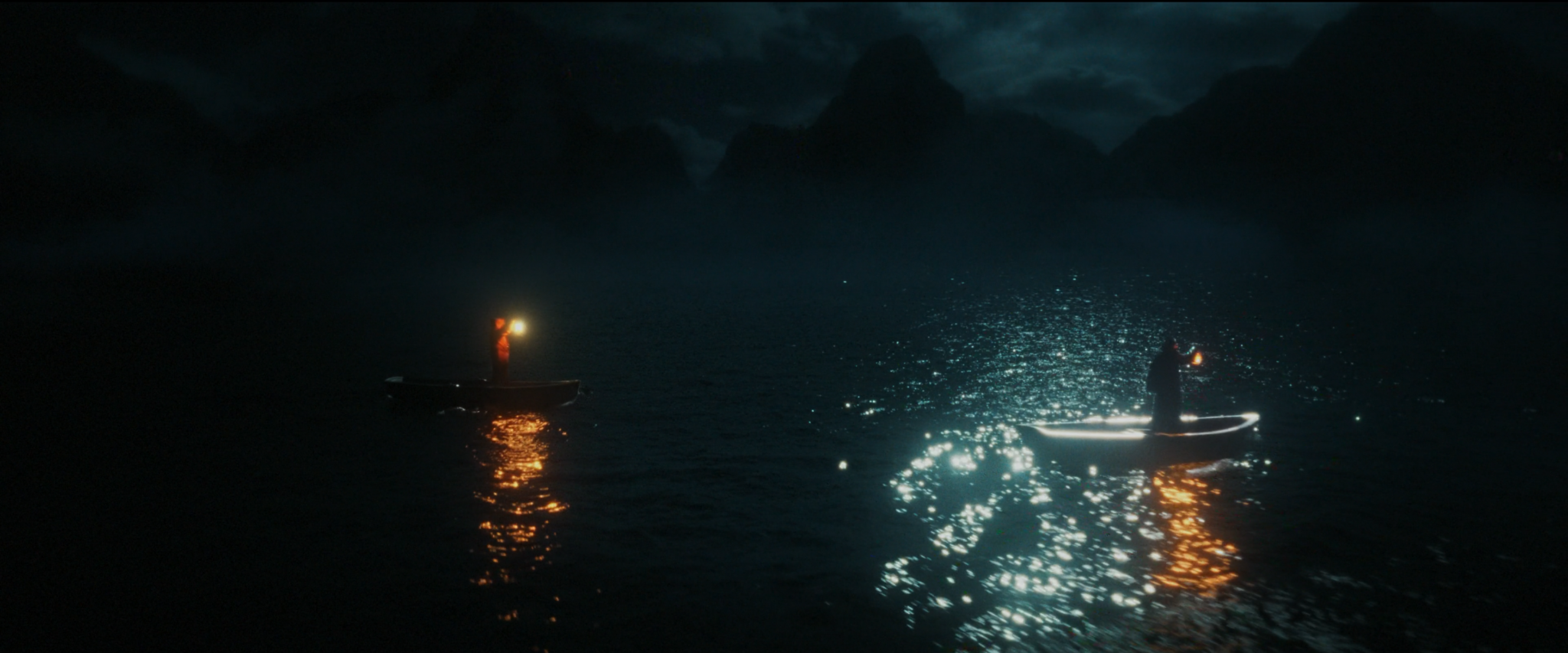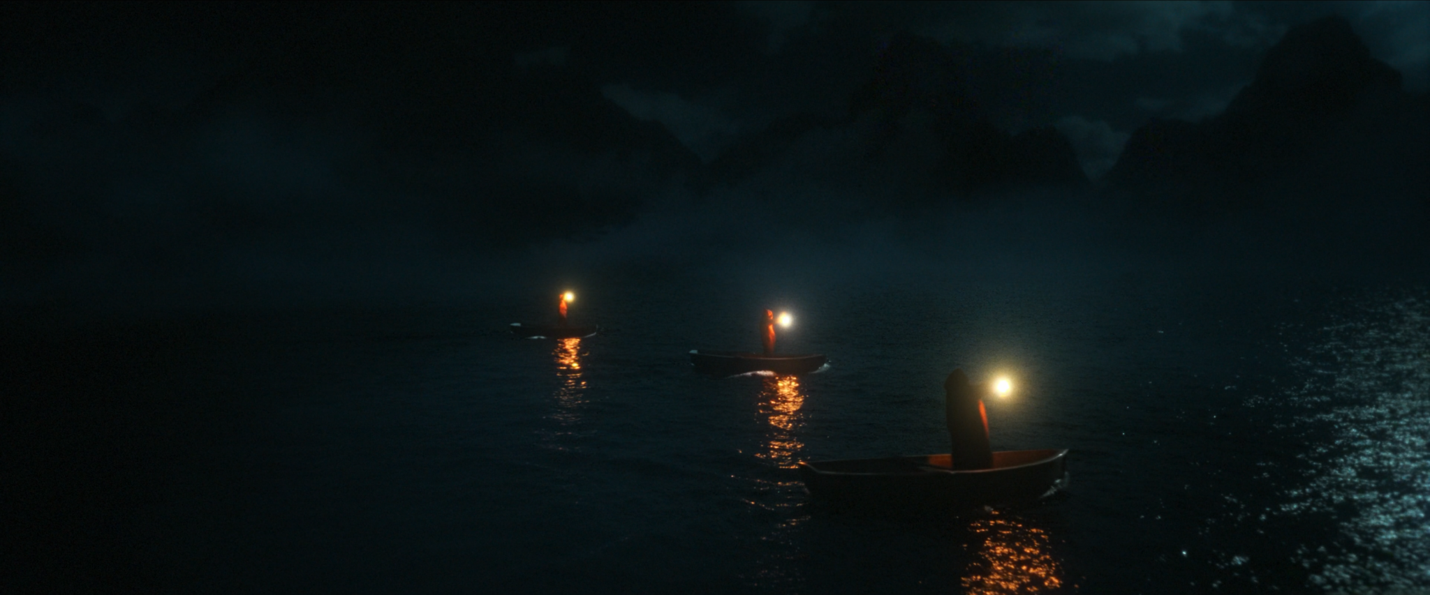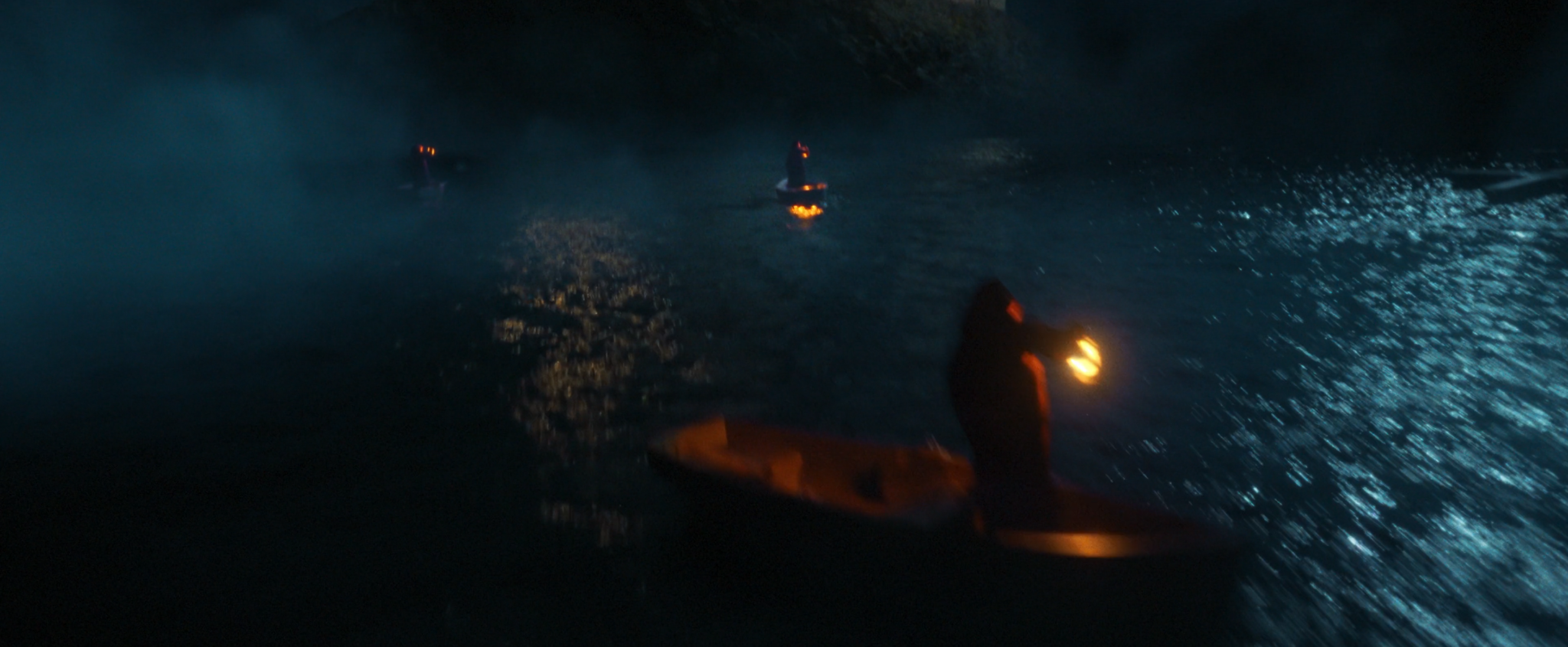 Following the artistic guidelines in the script, we created a mysterious atmosphere by adding fog, for example. During filming, the boats were towed by motorboats that were not supposed to appear on screen. We chose to erase them and reproduce the water in 3D, which meant simulating the movements of the boats realistically. Light reflections were added, taking into account the constraints of the water and its reflections. Other shots in the video required objects in the field to be removed.