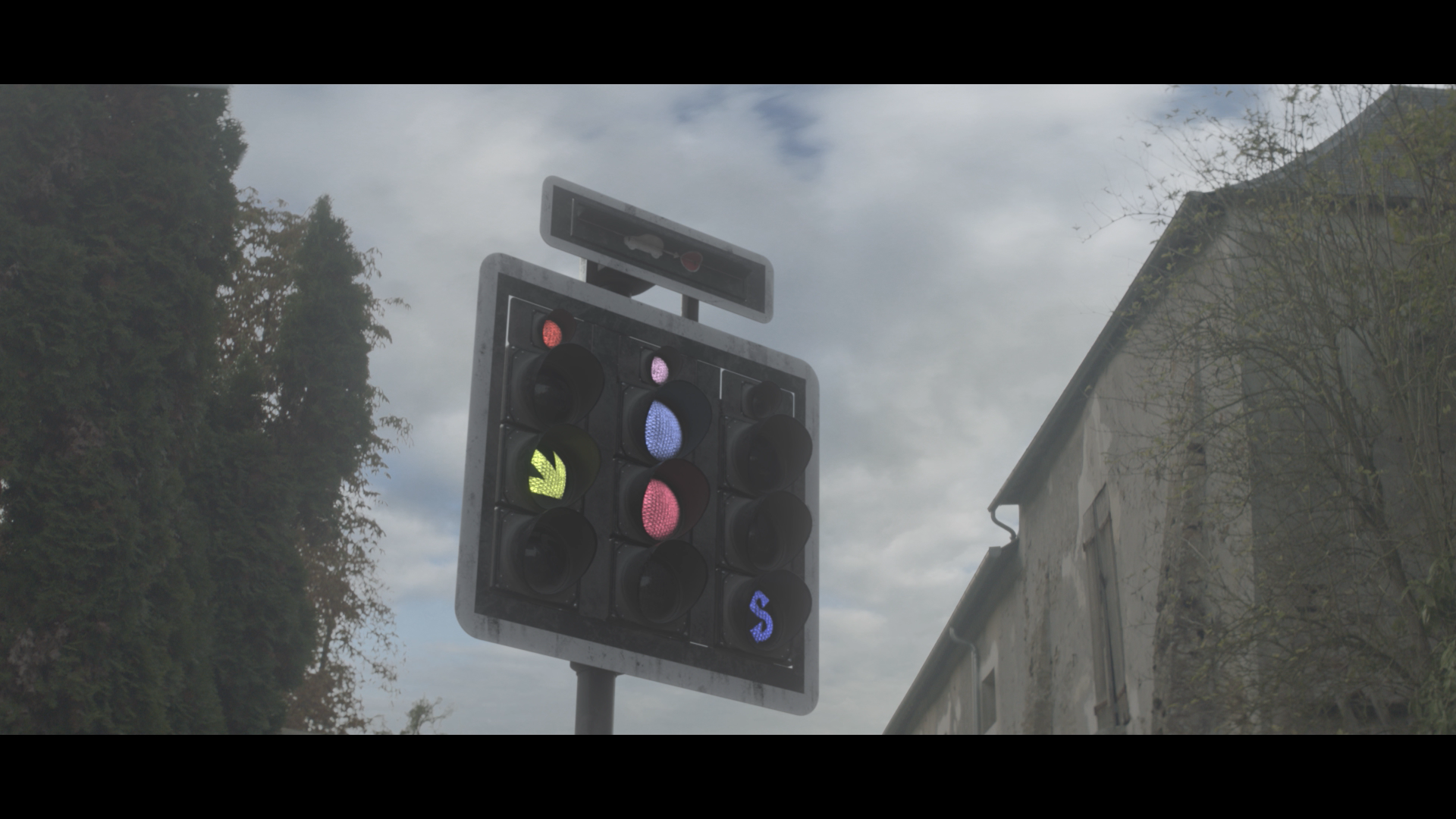 To enhance the craziness of the story's universe, we also conceived and designed in 3D a multicolored traffic light, which was then integrated as realistically as possible into its environment.