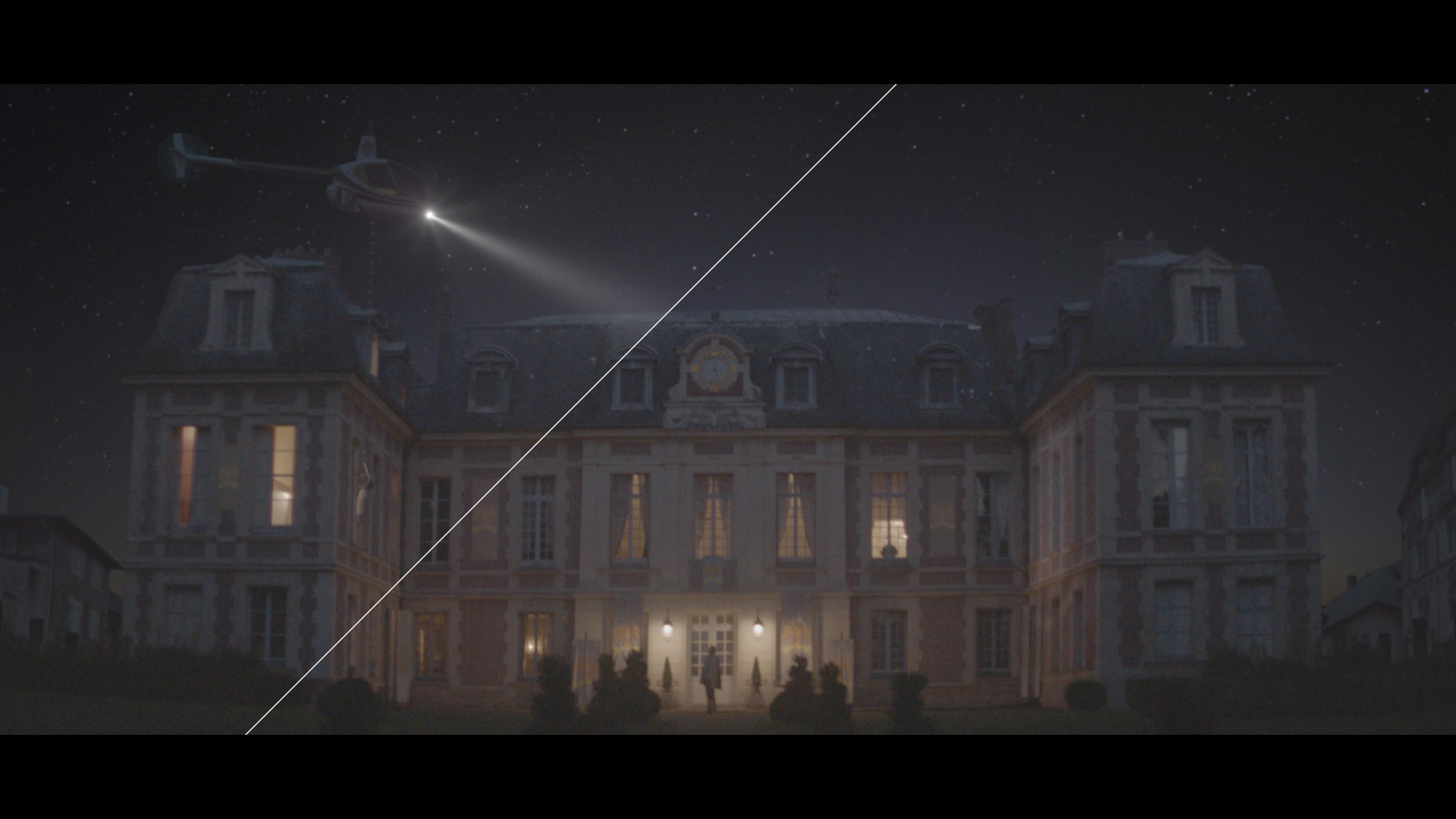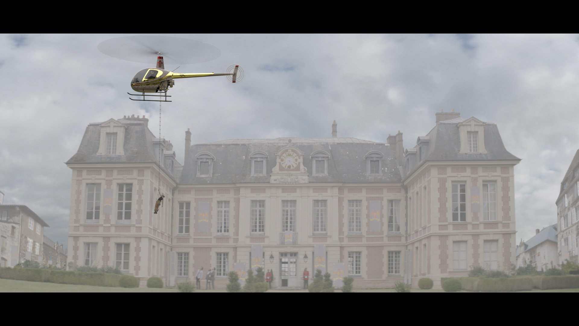 We also supervised the green screen filming of the actress suspended from the helicopter, which was then integrated in post-production.