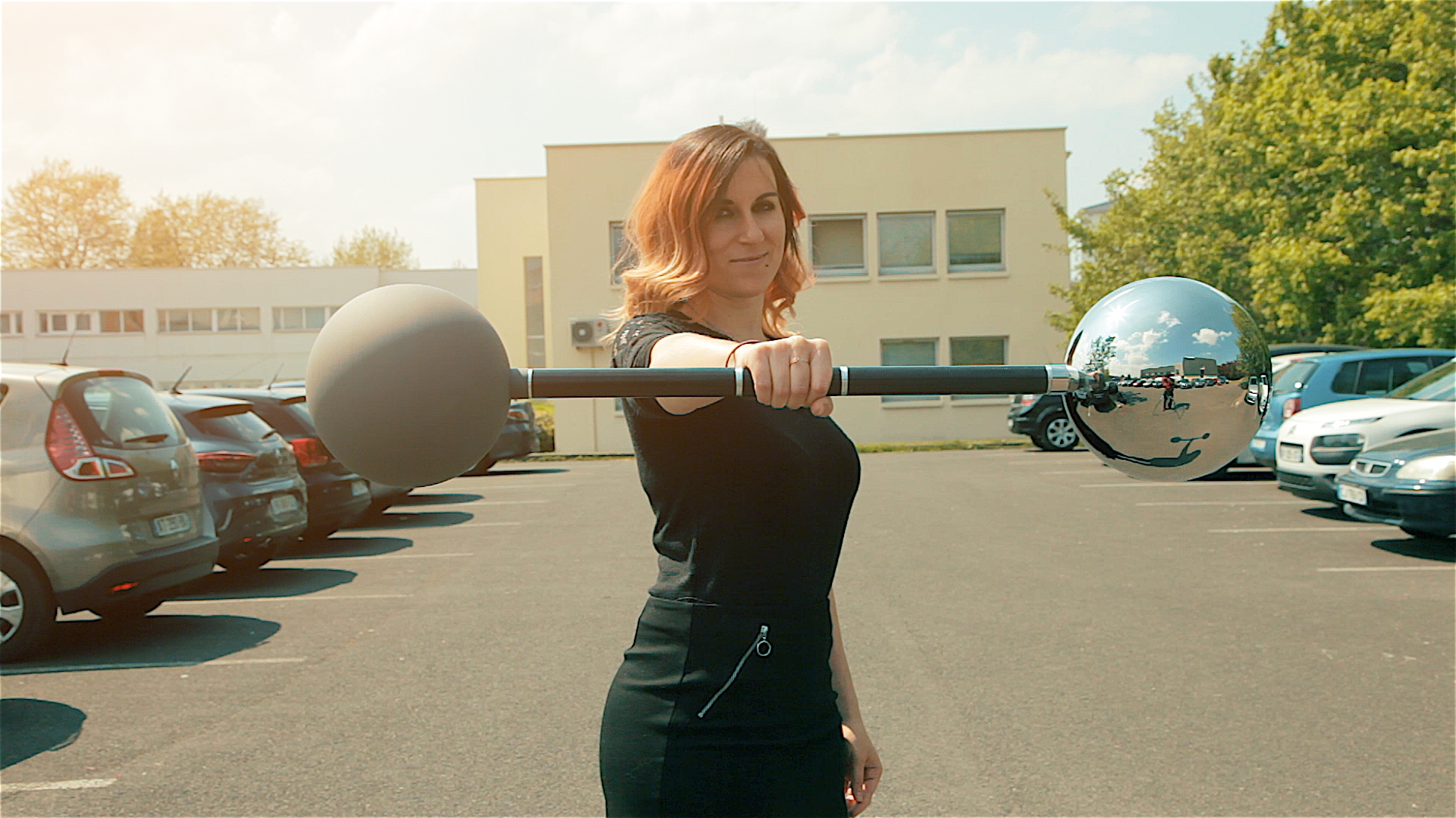 Macky tenant deux Light Probes - chromée et mat - pour démonstration photo