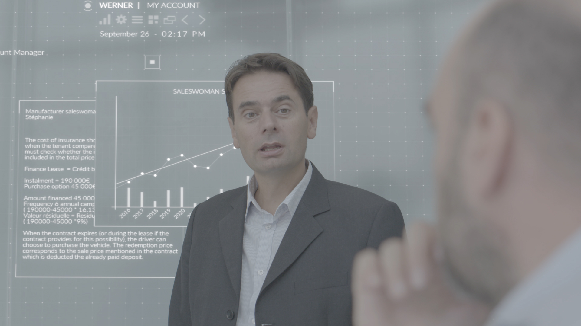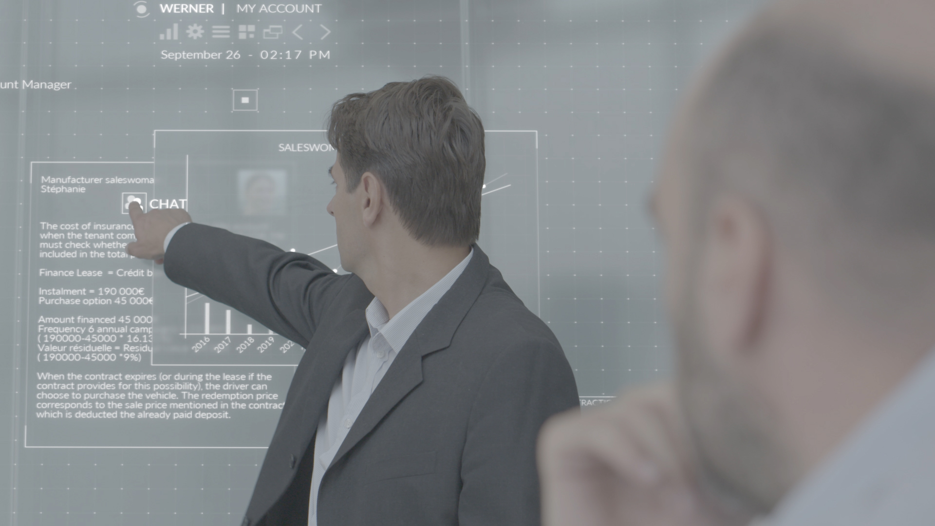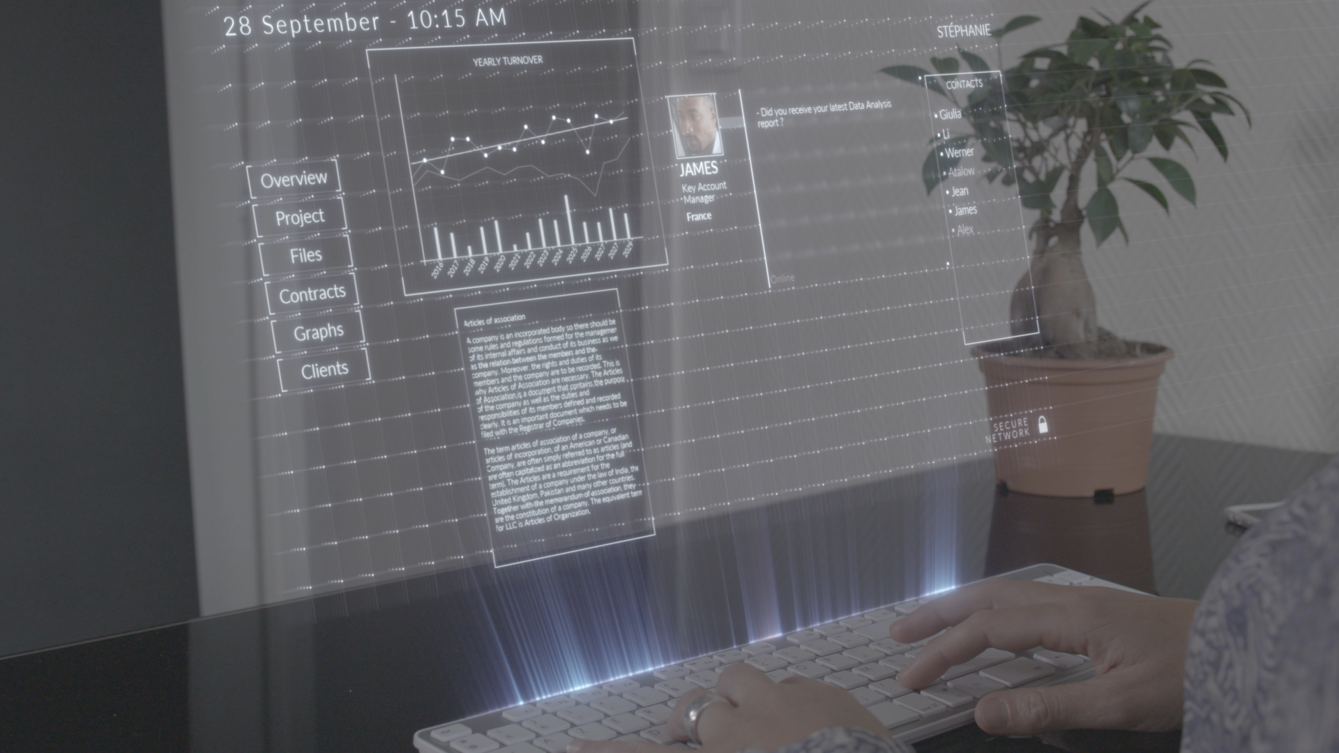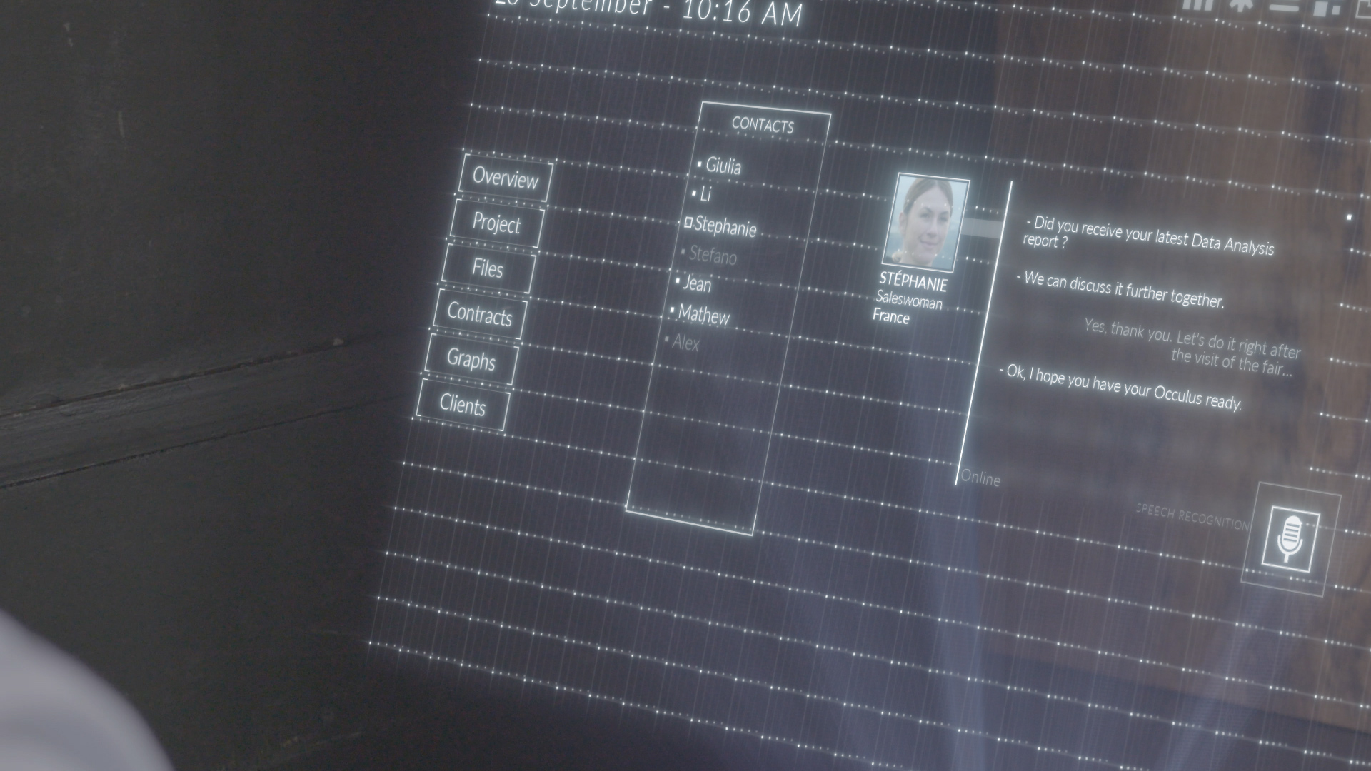 Réservé à un usage interne, l’intégralité du film met en avant une équipe de professionnels évoluant dans un écosystème informatique ultra-connecté et futuriste. Tous les objets connectés et l’interface utilisateur que vous pouvez apercevoir dans les visuels permettent à la marque de véhiculer une image moderne et technique, mais néanmoins intuitivement simple à son nouveau service.