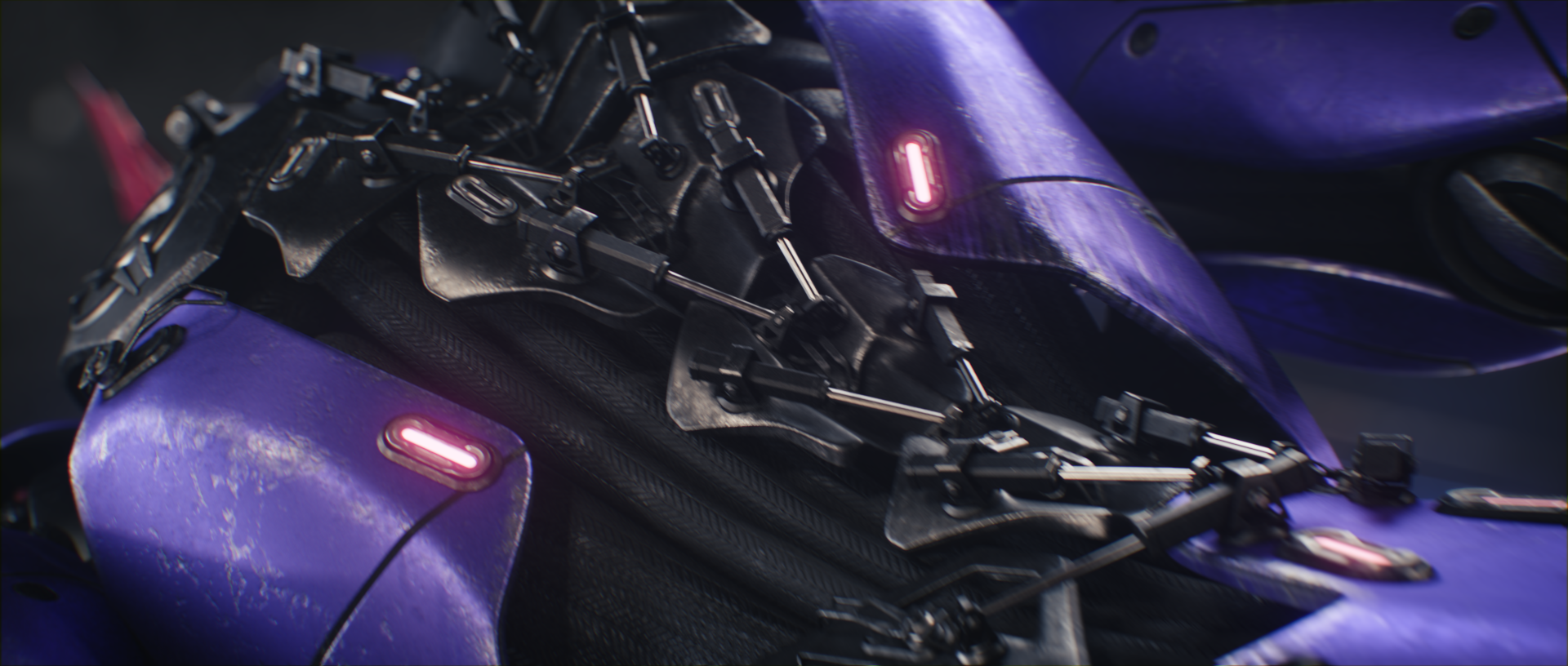 – Création des textures, en respectant les couleurs emblématiques de la marque. Ajout de différentes matières pour donner plus de profondeur au personnage et son histoire par des détails de dégâts, rayures, brûlures, reliefs, peintures…