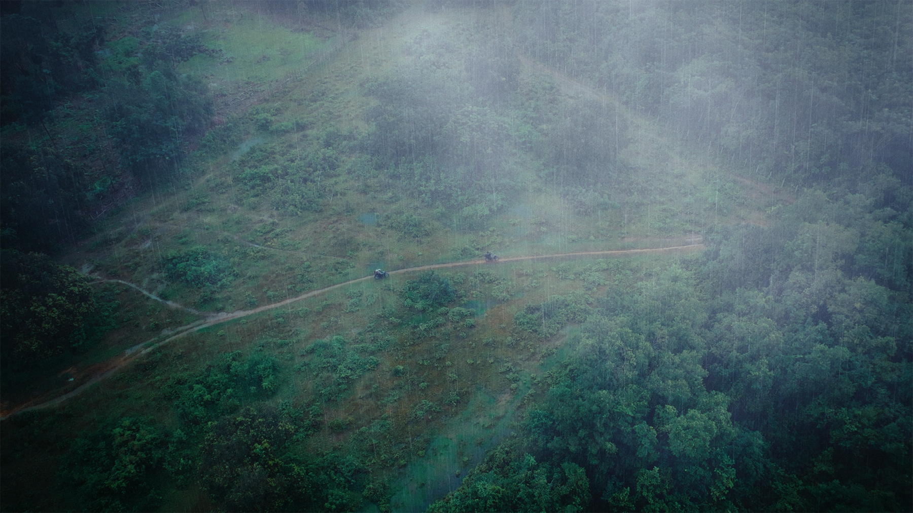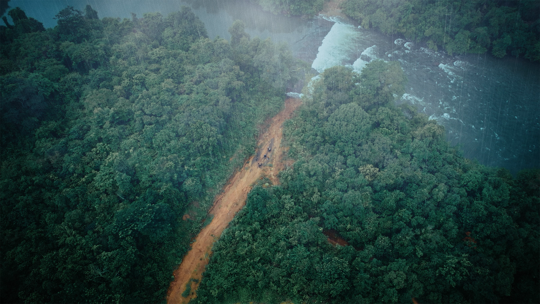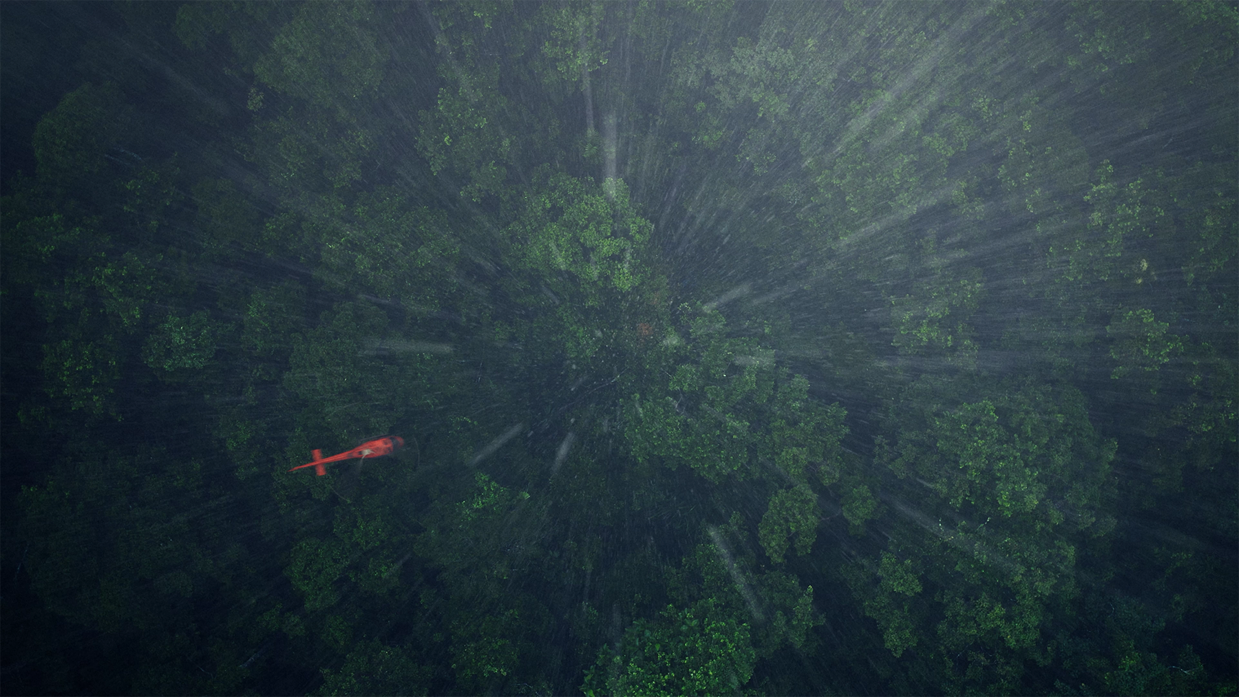Une ambiance tropicale mêlant de la pluie et une brume épaisse a également été rajouté.