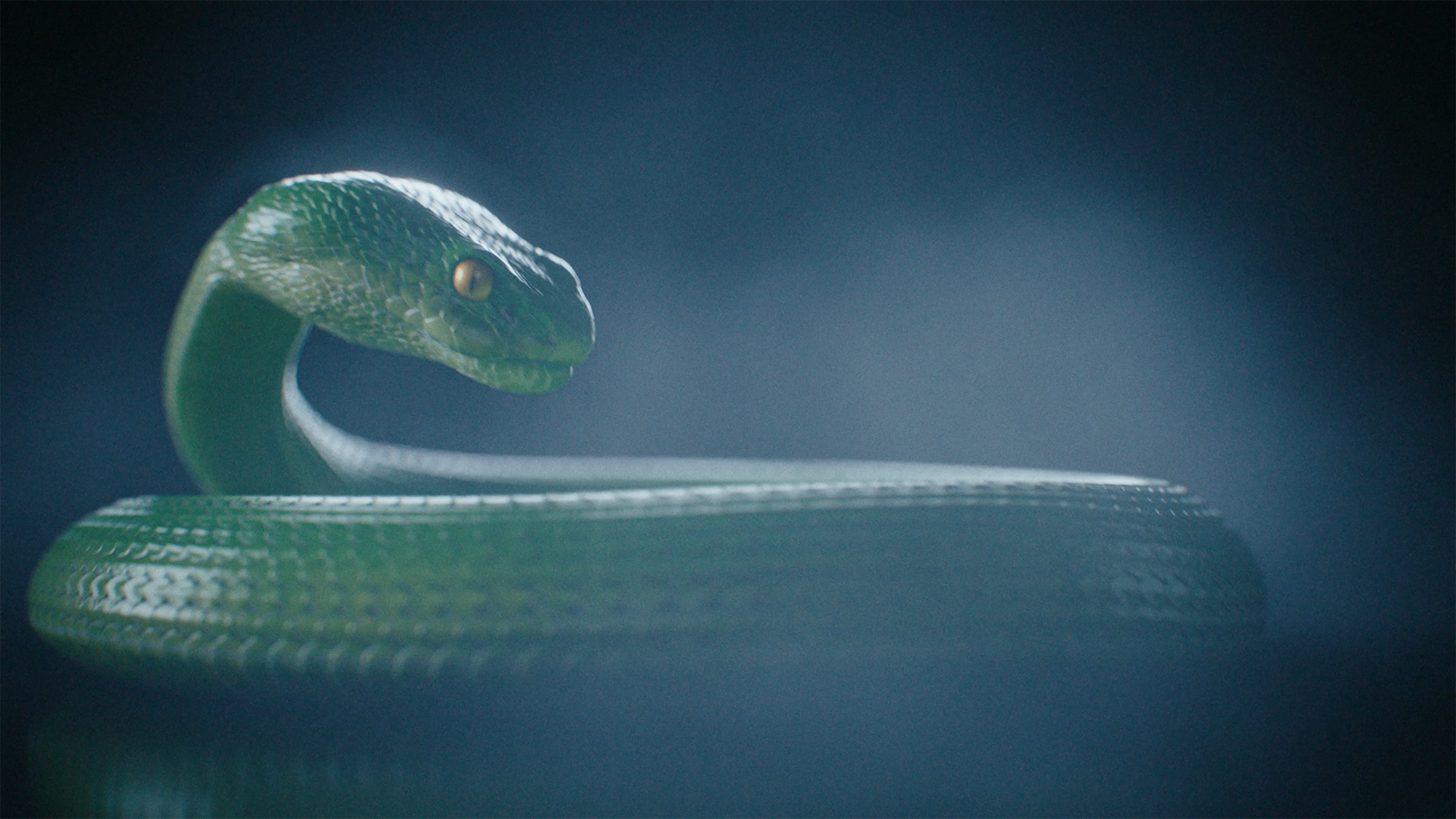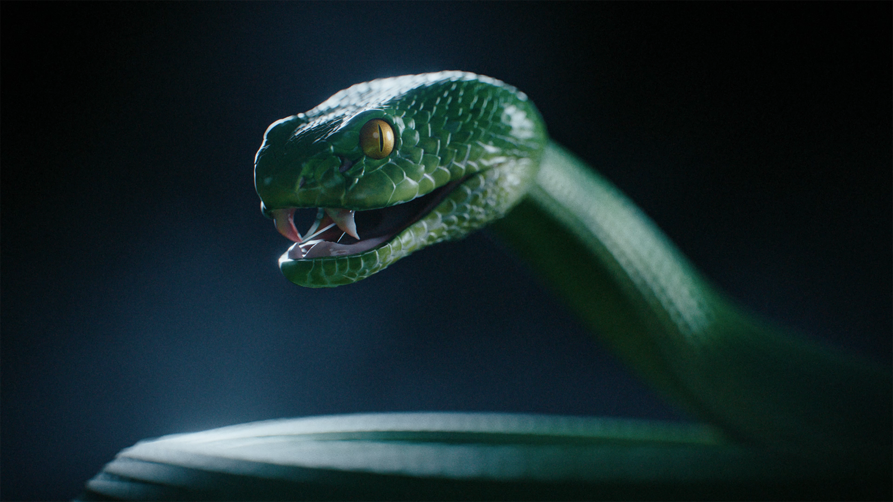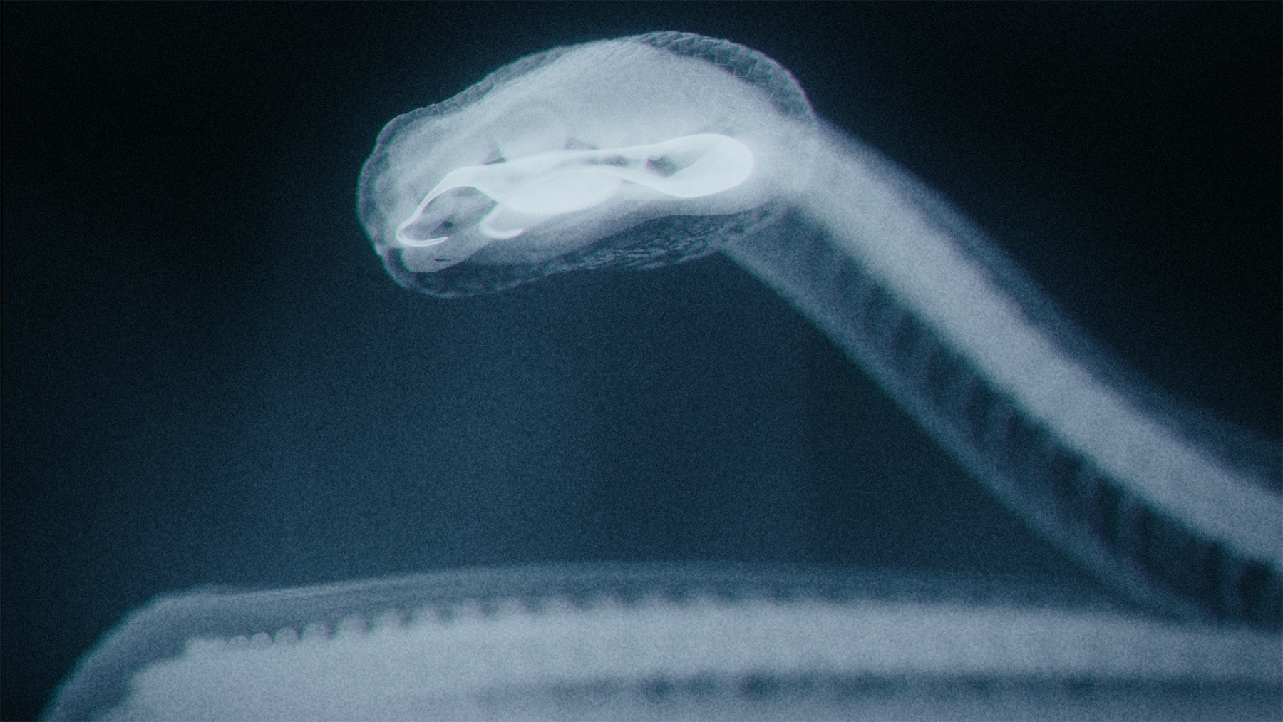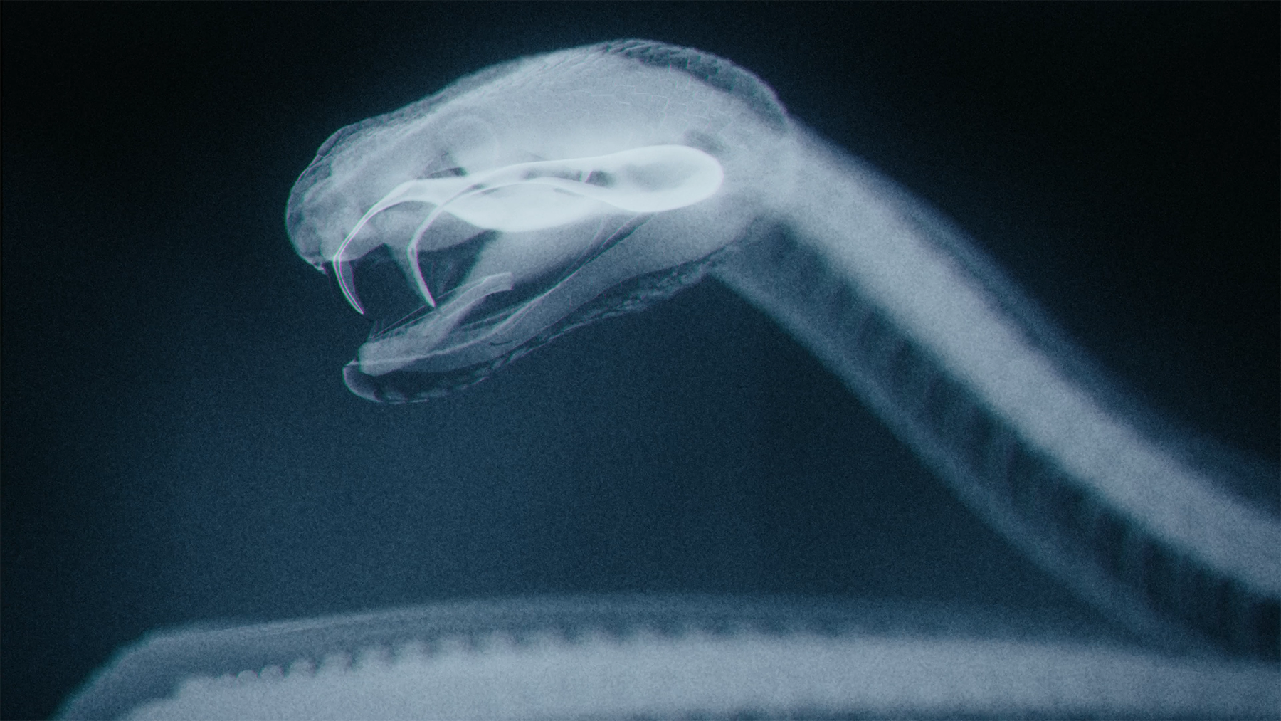 Enfin, notre équipe a modélisé et animé le crotale des bambous et l’a mis en en scène dans la séquence de morsure grâce aux rendus imitant une vidéo rayons X.