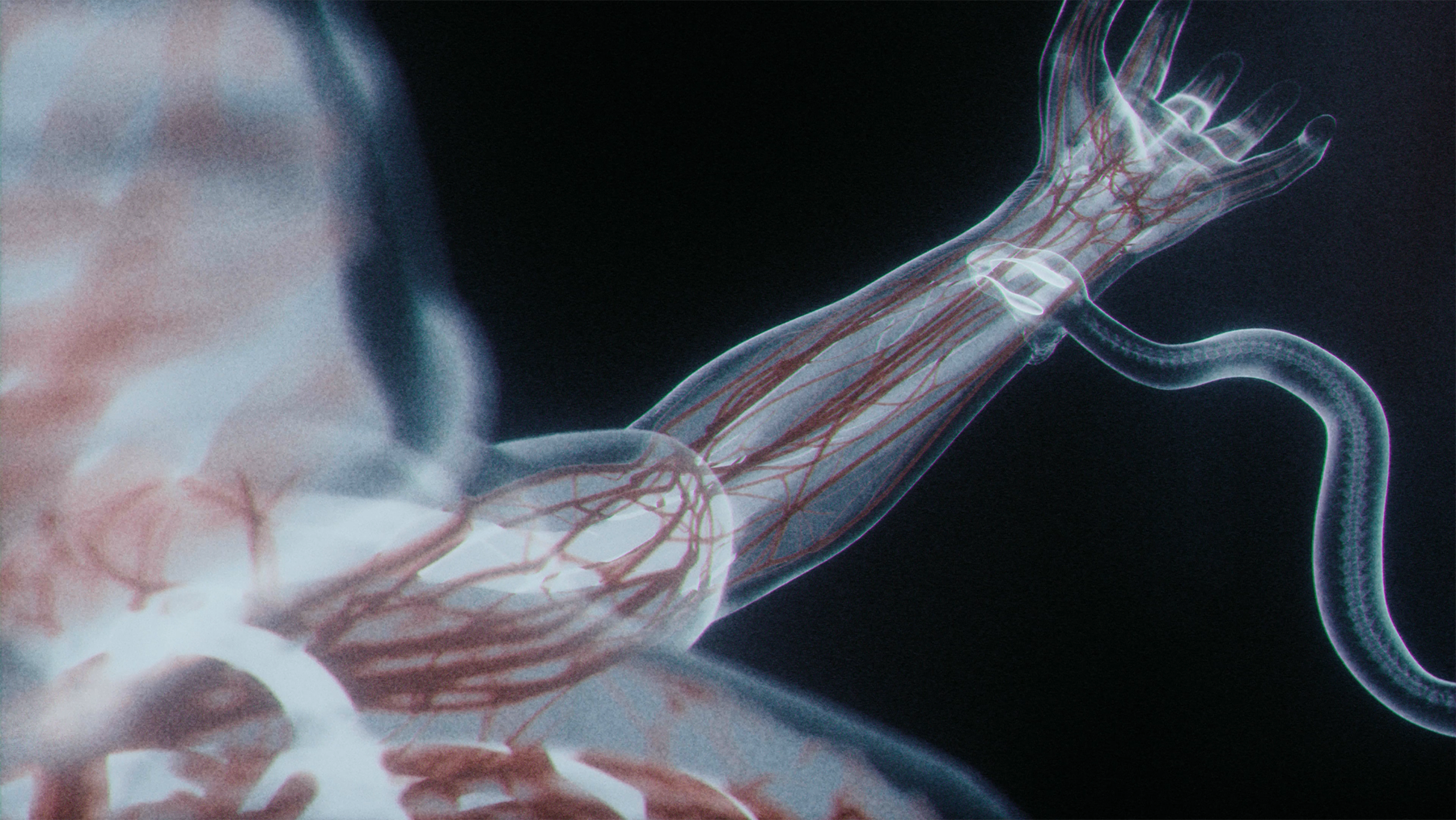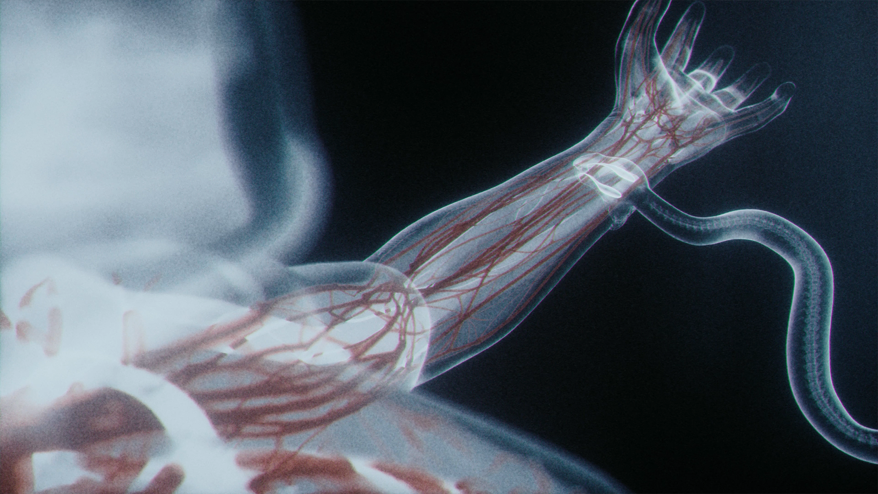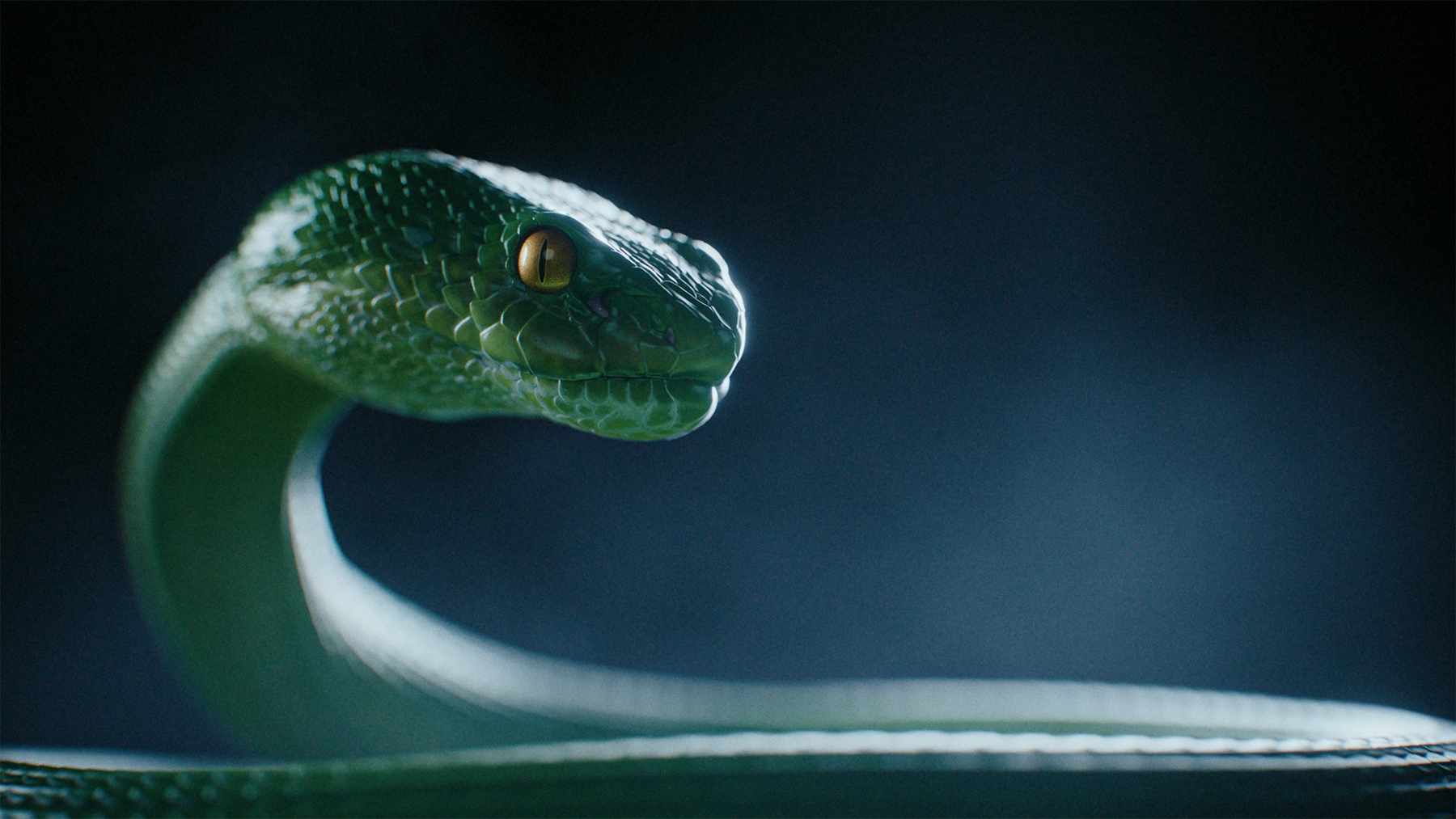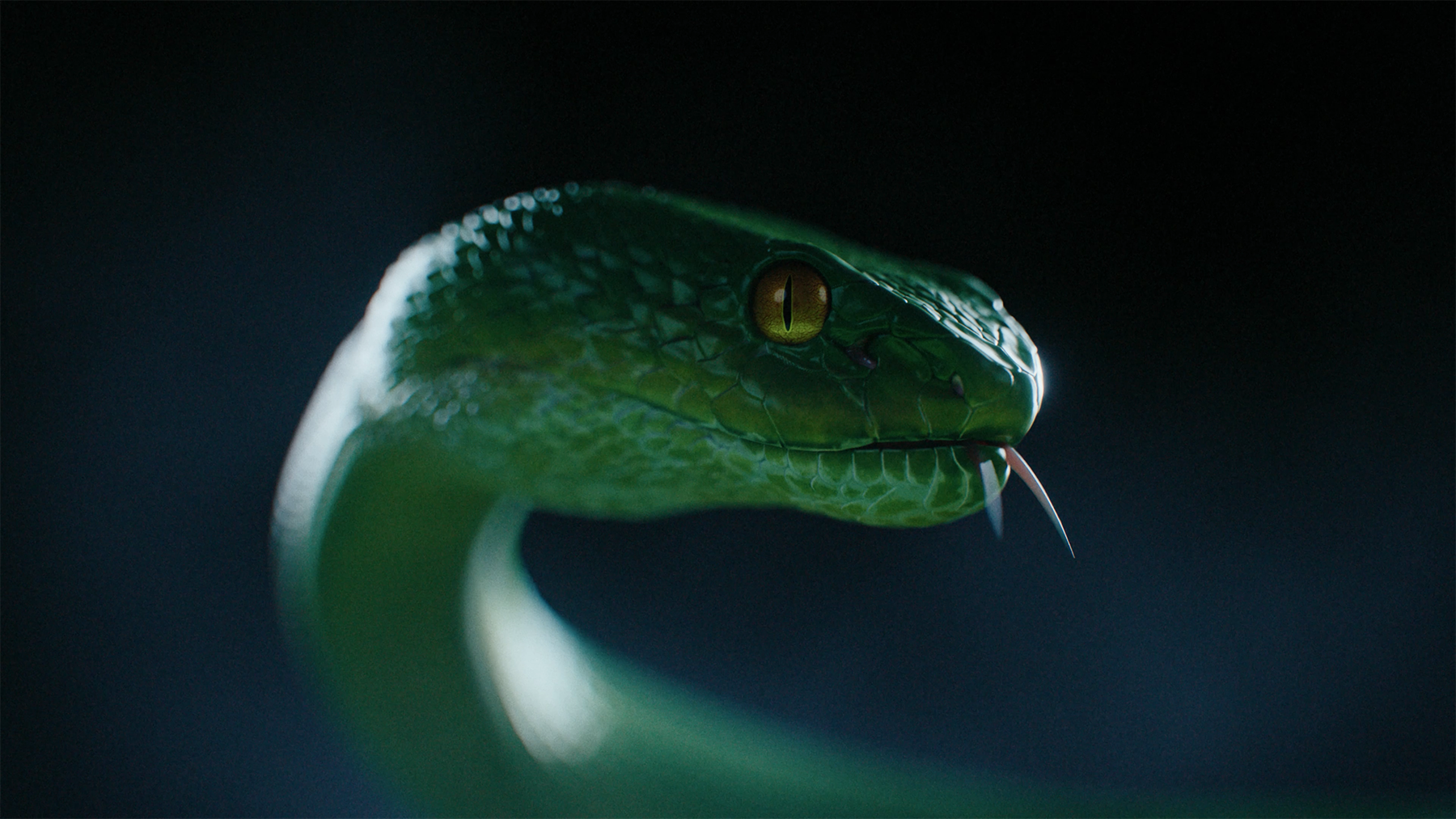 Enfin, notre équipe a modélisé et animé le crotale des bambous et l’a mis en en scène dans la séquence de morsure grâce aux rendus imitant une vidéo rayons X.