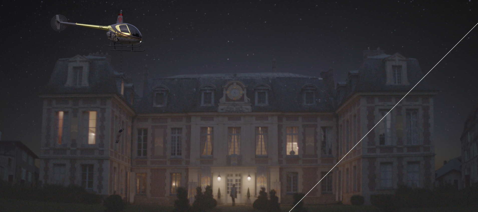 Le Roi Des Cons – Château et l’hélicoptère dans la nuit effets spéciaux