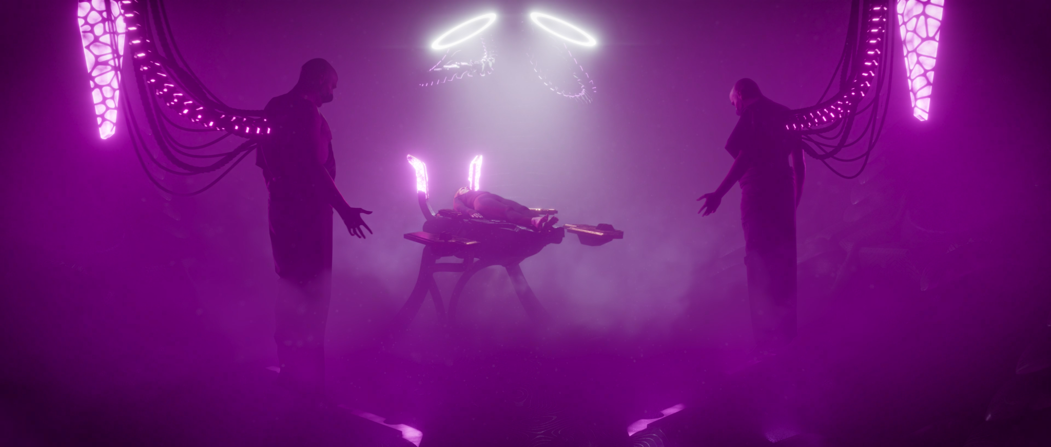 Les VFX/CGI étant les éléments centraux de la vidéo, nous nous sommes assuré d’être en accord total avec l’univers et la direction artistique de Mechachain, en particulier pour la création des décors futuristes. Les divers échanges et le temps de préparation pré-tournage ont ainsi permis à notre superviseur VFX et son équipe d’avoir une idée précise des différents éléments devant être utilisés lors du tournage (exemple : fond vert).