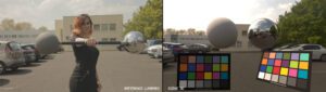 Mais les Light Probes ne sont pas les seuls outils à prendre lors d’un tournage ! L’utilisation d’une HDRI est vivement conseillée si vous souhaitez reproduire de manière détaillée votre environnement. En effet, grâce à ses prises de vues 360°, vous disposerez de toutes les informations lumineuses nécessaires afin d’y incorporer votre modélisation 3D. Évidemment, d’autres types de mesures peuvent être essentiels selon les projets (mesure géométrique, distorsion de lentille etc.)