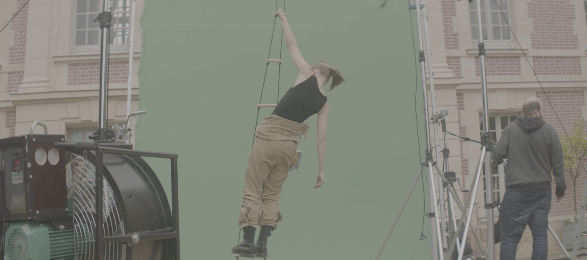 Le Roi Des Cons, court-métrage, femme, échelle, fond vert